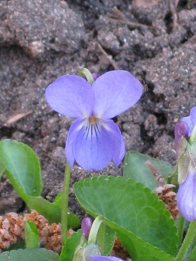 Ich gehe davon aus, daß es sich nicht um das Hundsveilchen handelt, sondern um das Märzveilchen (Viola odorata). Grund: beim Märzveilchen sind die Blätter grundständig angeordnet und die Blütenstiele unbeblättert, beim Hundveilchen dagegen tragen die Blütenstiele Blätter.