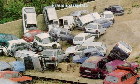 Na, das Bild ist doch eindeutig: da hat sich ne Horde Männer mit ihren Autos zusammengefunden, um eine Attacke auf den Frauenparkplatz zu fahren. Das Ergebnis wurde da unten dann abgelichtet.