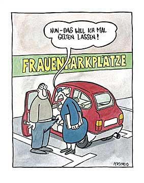 Zitat Daß Parkplätze für Frauen bei verständnislosen Männern so große Agressionen auslösen, daß eben diese Männer sogar anfangen, diese Schilder voller Wut umzufahren... |
