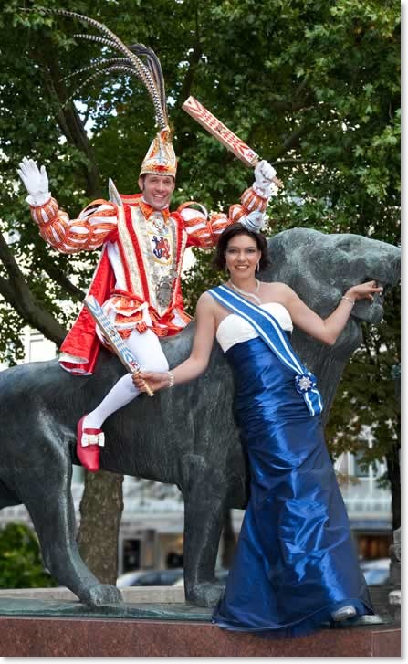 @rippe: Tolles Bild; der Mann als Jeck: auf dem (bayerischen?) Löwen?, die Frau: elegant! Und greift dem Löwen ins Maul! Und was trägt die denn für einen Orden? Karnevalsorden? Sieht eher wie der "bayerische Verdienstorden am Bande (Schärpe?)" aus!