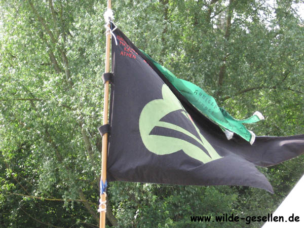 Hier mal ein Bild unserer Stammesfahne.... trotz der mehreren Lagen und dem genähten weht sie eigentlich ganz schön