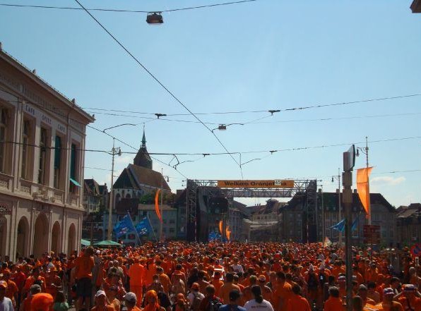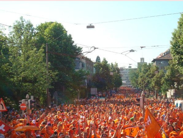 - tanzende und feiernde deutsche, die die Stadt zu einer grossen Party machen, wie nach dem hochvrdienten Sieg gegen Portugal oder die Holländer von Samstag Morgen bis Sonntag morgen.