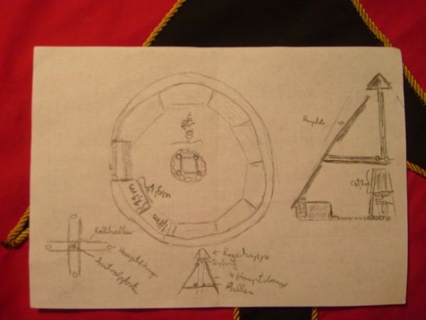 In den Zeichnungen sind noch Ideen der Holzkohte aus Immenhausen mit drinne, z.b. der Kamin.