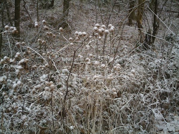 Spaß beiseite: ich geb noch zwei-drei Tipps: In unseren Breiten ist die Pflanze einjährig. Die Köpfchen waren im September bläulich. Ein Imker (nicht ich) hatte in unmittelbarer Nähe seine Bienen stehen. Wahrscheinlich auch wegen dieser Pflanze. Und sie piekst.