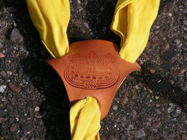 Ich habe da zwar einen Schreiner, der Halstuchringe in Wappenform herstellt, aber die sind im Einkauf fast unbezahlbar; deshalb macht er die exklusiv für unseren Stamm.