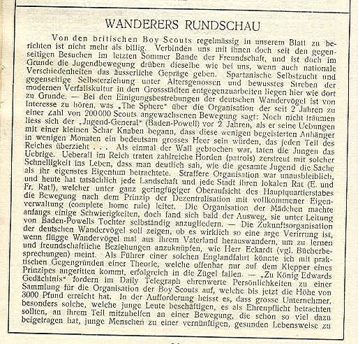 Wenn jemand Interesse hat, kann ich auch weitere Artikel etwa über Pfadfinder in Metz, Breslau oder Lübeck (alle 1910!) im Original hier einstellen! Ein längerer Artikel über den bereits 2. Münchener Pfadfinderzug existiert ebenfalls!