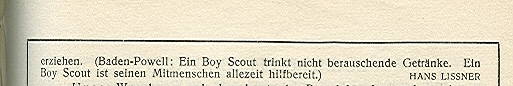 Erlaubt mir, noch hinzuzufügen, dass das Urheberrecht (copyright) bei mir liegt; die Originale sind Teil meiner kleinen Sammlung zur Pfadfindergeschichte. Ich bin aber gerne bereit, entsprechende Veröffentlichungen für Pfadfinder zu erlauben; möchte aber wissen, wer das wünscht. Also bitte einfach eine IM an mich! Bitte habt dafür Verständnis, ich hab da leider auch schon unliebsame Erfahrungen gemacht! Danke!
