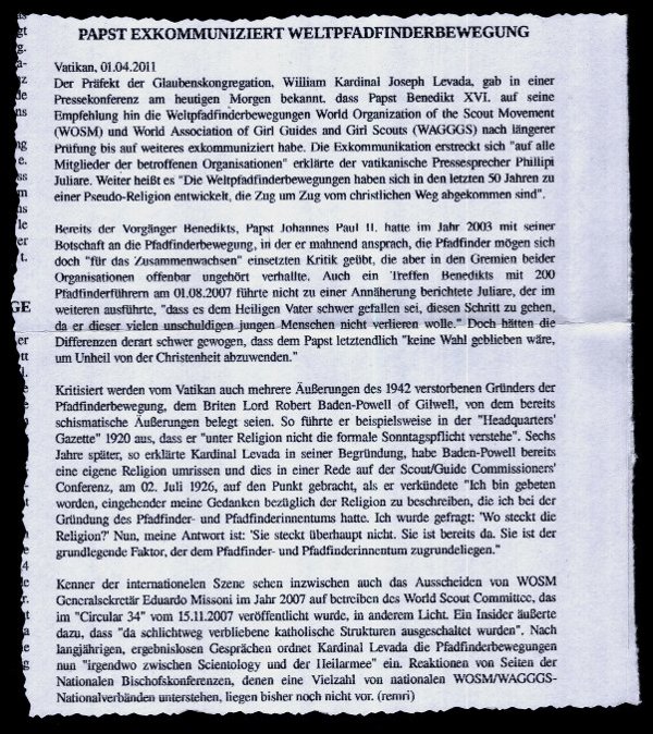 Forenübersicht » Pfadfinder - Forum » Bundes- und Stammesführung » Papst exkommuniziert Weltpfadfinderbewegung