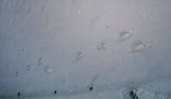 Deins müßte ein Hase sein. Oder Wildkaninchen. Mir ist nicht ganz klar, warum die Spuren so unterschiedlich groß sind - liegt das an der Aufnahme?