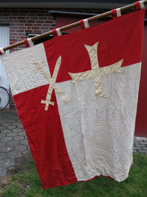 Das Kreuz ist ein Templerkreuz, Heradlisch aber falsch, Weiß auf weiß gibt es nicht im Heraldischen....