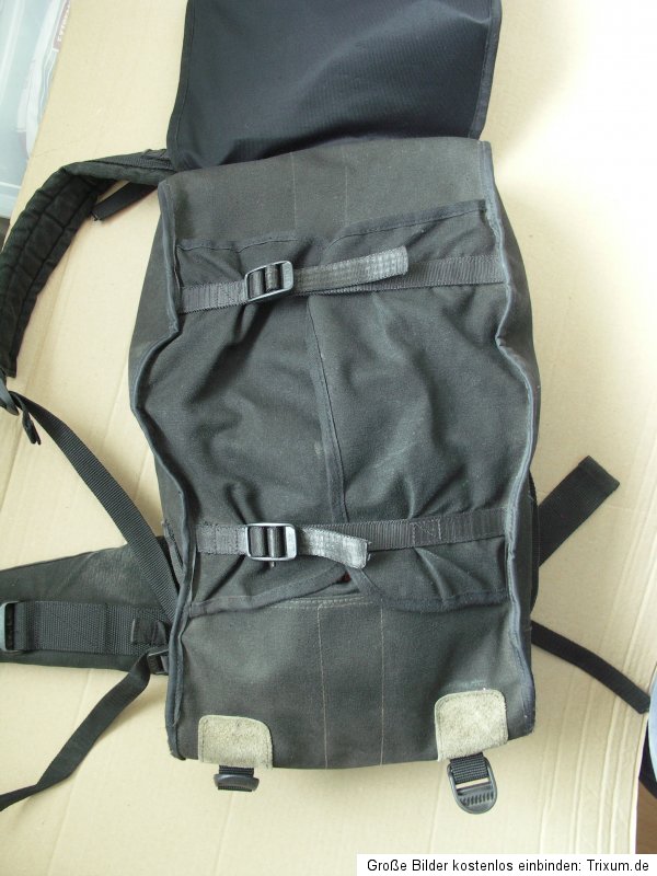 Wie dem auch sei, der Rucksack, den ich ergattern konnte, hat auch die praktische Technik eines Tornisters und bereits die schlaufen, um Fahrtenrolle etc. zu befestigen.