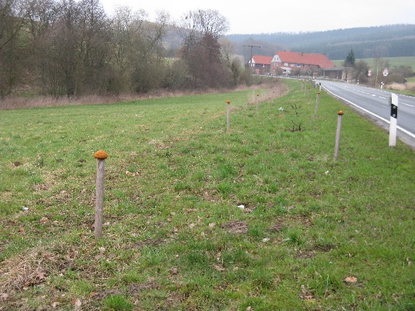 Ich habe gestern an der B 248 bei Langelsheim auf einem Streckenabschnitt von etwa 300 Metern, rechts und links der Straße Pfähle mit eigenartigen "Schwämmen" gesehen. Die Masse fühlte sich an, wie ausgehärteter PU Schaum oder dieses grüne Zeug für Trockengestecke.