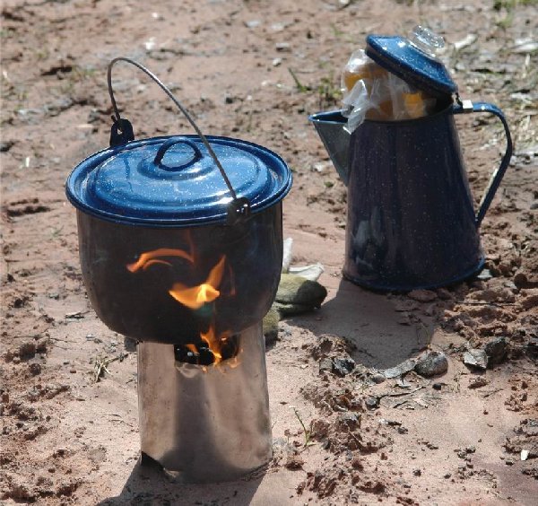 Einen Hobo-Ofen benutze ich schon seit Jahren. Man spart viel Holz, eine volle Hand voll Kleinzeug reicht zum kochen. Außerdem ist es absolut "Försterfreundlich"! lachend