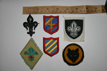 Links unter ist ein belgisches Abzeichen vom VVKMS (heute: Scouts en Gidesen Vlaanderen) oder einem Vorläufer zu sehen. Es wird heute in anderer Farbzusammenstellung für den Seepfadfinderzweig genutzt.