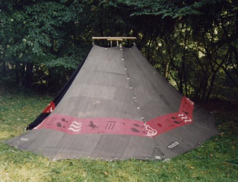 Auf Deinem schönen Farbfoto kann man gut erkennen, dass diese Kohte noch mit Knöpfen (übrigens auch am Bodenrand, wohl damals schon zur Ergänzung zu einer Jurte! Ab wann Jurten aufkamen, weiß ich garnicht!) und nicht mit Schlingen (oder Schlaufen) versehen ist; auch ein Hinweis auf eine frühe Form.