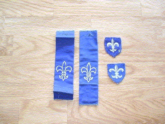 Das sind Bundeszeichen der CPD zwischen 1969 und 1972 für die Pfadfinderstufe. Gab es auch in Kinderstufenrot für Wölflinge und grau mit blauer Lilie für Rover und Führer. Eher selten. Die Kluft (aus irgendeiner scheußlichen Kunstfaser) hatte damals nur eine Brusttasche rechts links. Dort wurden die Abzeichen eingeknöpft, für den unteren Umschlag gab es unten an der Tasche einen Schlitz, damit da nichts rumbaumelt. Halstuch dazu in Rot für Wölflinge und in Blau für den Rest.