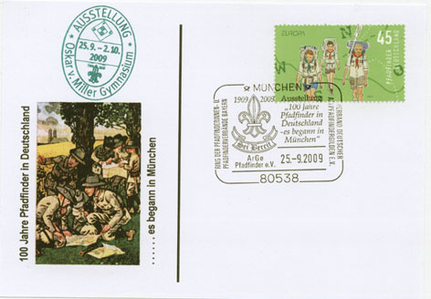 War "vor Ort" und habe natürlich auch die Sondermarkenkarte mit dem Sonderstempel gekauft.Leider hat sich der Verkauf" in Grenzen" gehalten- waren wohl nicht soviele Briefmarkensammler da-oder konnten das Angebot nicht so recht würdigen.Auch hätte der "Andrang" wohl größer sein können-für so eine einmalige ,wirklich gut organisierte Veranstaltung. Der Innenhof des Oskar-v.Miller-Gymn. hätte ein paar Hundert Pfadfinder mehr vertragen-immerhin war die Presse u.a. die SZ vor Ort-und auch genügend lokale Prominenz-allen voran Staatsminister Dr.Spaenle, der die Gedenktafel enthüllte. Der SZ-war es pressemäßig doch ein Zweispalter mit Foto wert........