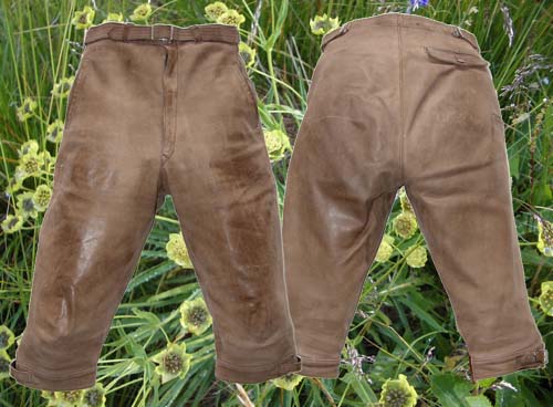 robuste, gebrauchte Kniebundlederhose aus dickem Lavaraleder