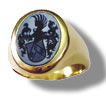 Ein Siegelring enthält ein Motiv als Negativ, um damit ein Siegelzeichen ins Wachs drücken zu können: