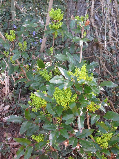 Dann die gewöhnliche Mahonie (Mahonia aquifolium) / verwechselt mit Ilex aquifolium. Wächst bei uns im Wald und in Siedlungsnähe