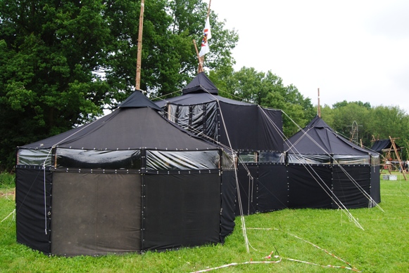 Anmerkung zum Bild: Für die kleine Jurtenburg wurde noch keine Rotationsabspannung vorgeschrieben. Sie wäre erst ab einer dreistöckigen Mitteljurte nötig gewesen.