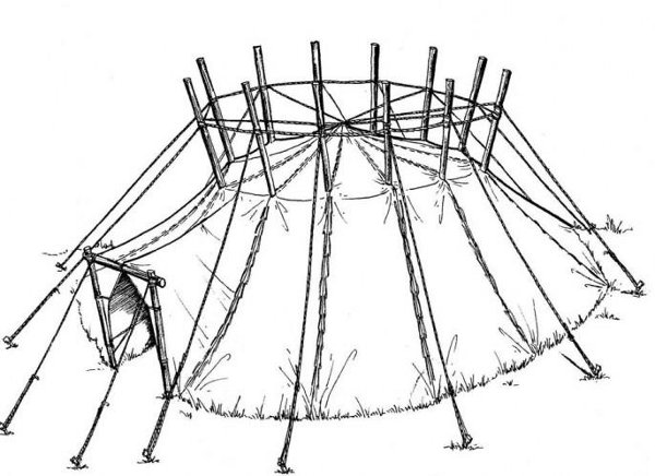 Auf einer pakistanischen Homepage fand ich folgende Zeltkonstruktion, die offenbar, wie bei unserer Jurte/Kohte, aus gelaschten Einzelzeltbahnen besteht: