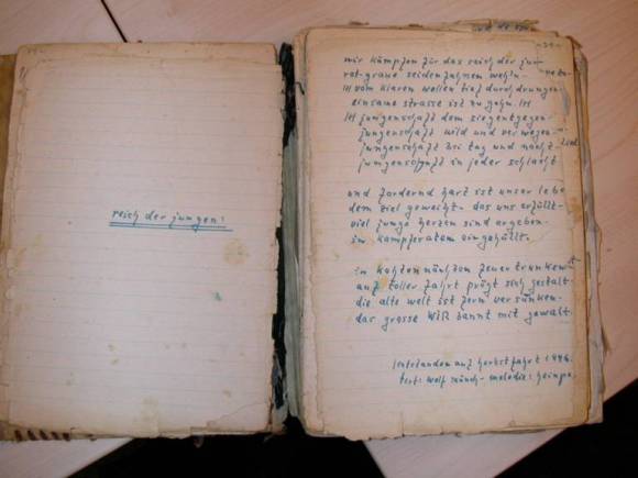 Das Bild zeigt eines von heinpes handgeschriebenen Liederbüchern....
